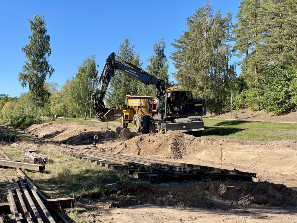 Markarbeten inför den kommande spåranslutningen till rälsbussgaraget.