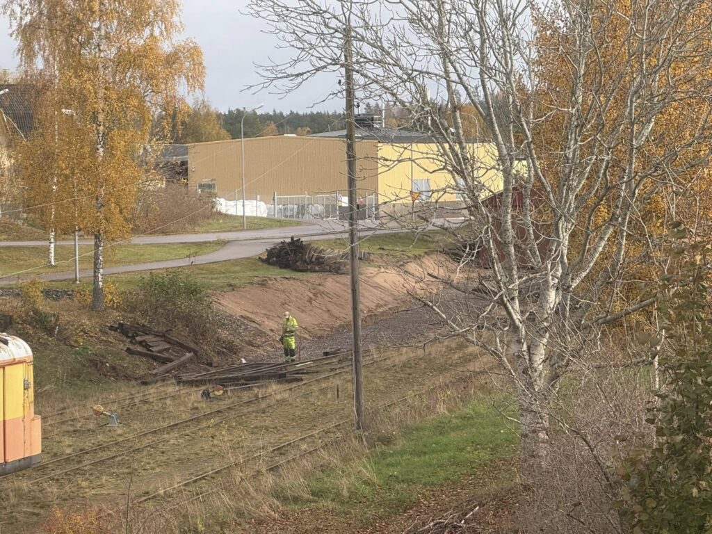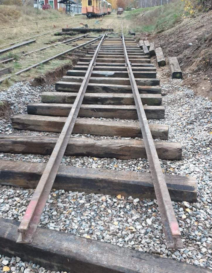 2023-11-15: Spårarbeten pågår innan vintern tar vid, markarbeten är klara och markplintar har placerats ut.