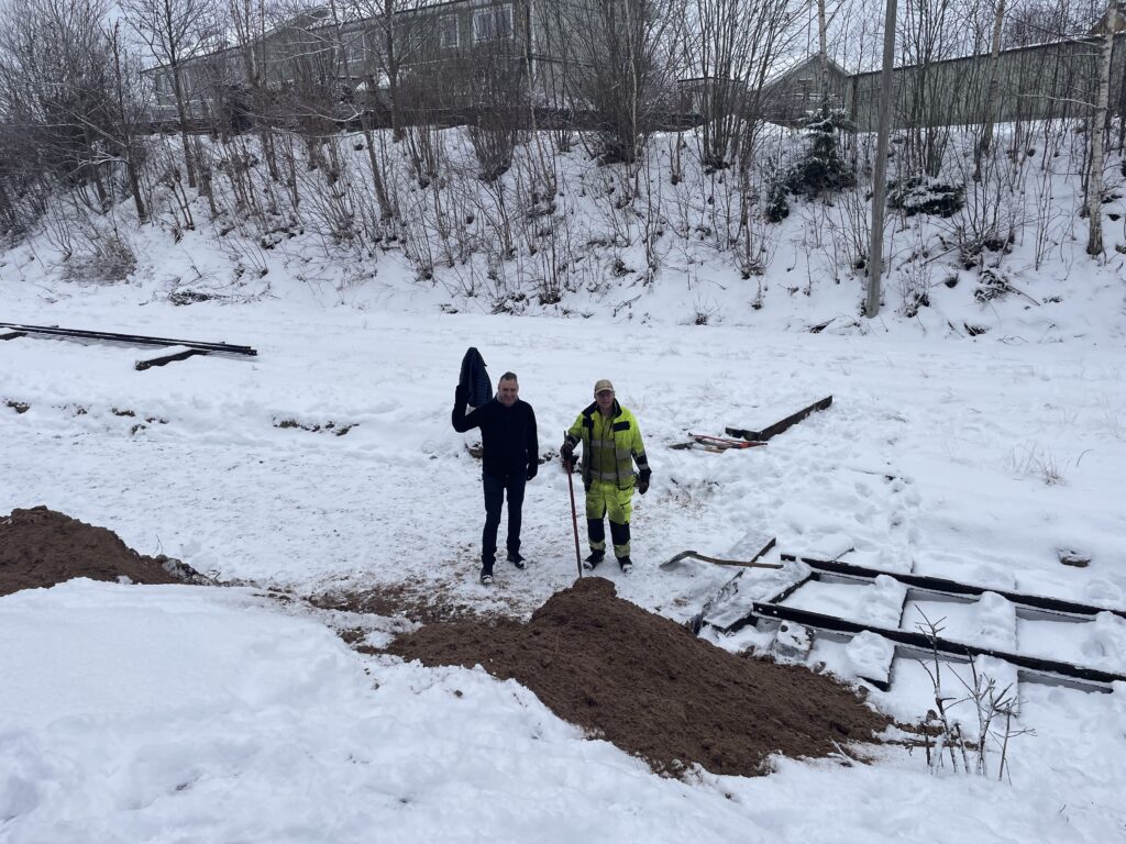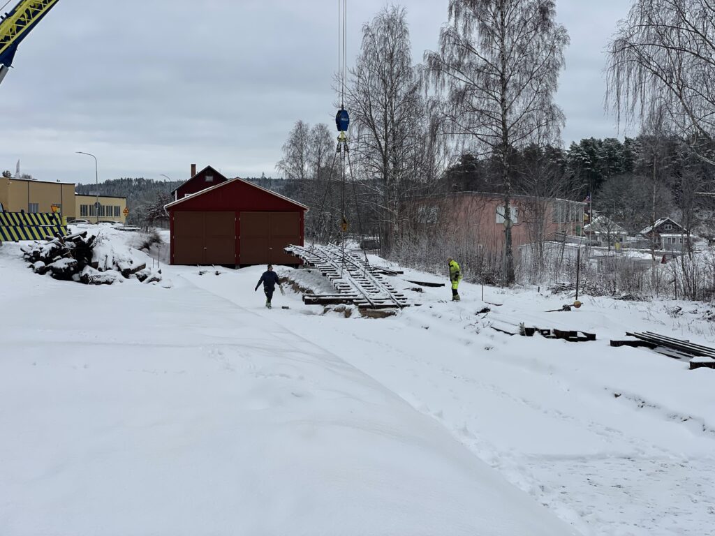 2023-06-01: Inspektionsgrav gjuten, markarbeten klara. En djupare grävning/sänkning av tomten mot första planen vilket fördyrat/försenat arbetet lite, men ger fördelen att bangården inte ligger lägre än rälsbussgaraget